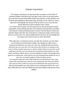 Topic: Tuskegee Syphilis Experiment of the Male Negro