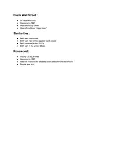 Topic: Black Wall Street and other Black communities destroyed due to racism